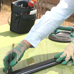 地域担当の作業員が現場でガラスを採寸・切断・加工して交換・修理します