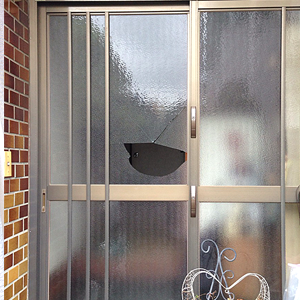 割ってしまった、ガラスを割られた、という場合は専門のガラス屋にお電話ください