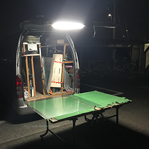 作業車には専用のガラス夜の作業も問題なくできます