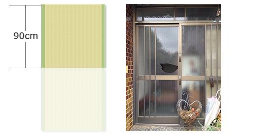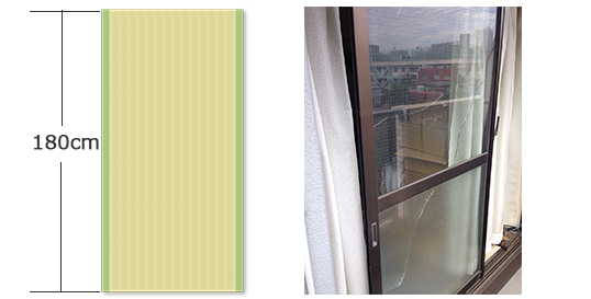 一般的な住宅のガラスの場合、畳1枚分(1800mm×900mm)か畳半分(900mm×900mm)のサイズのものが大半です。それ以外の大きなものや特殊な形状のガラスの場合は、受付時にオペレーターにお伝えください。