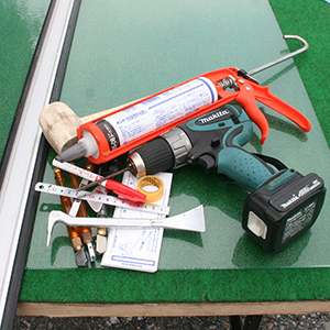 ガラス修理、ガラス交換はこれらの工具を使います。もちろん弊社の担当者も同じものを持っています