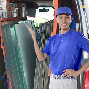 地域担当の作業員が現場でガラスを採寸・切断・加工して交換・修理します